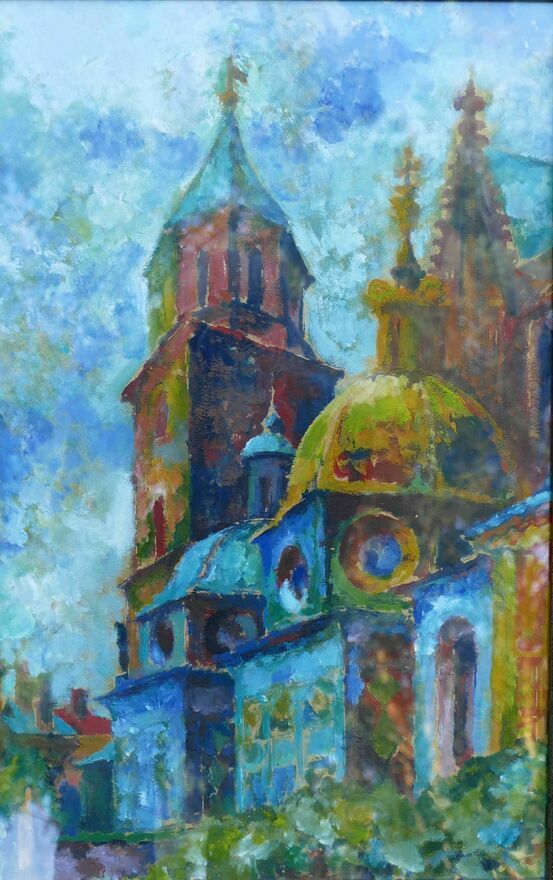 Akwarela obraz Jana Kulikowskiego KOŚCIÓŁ