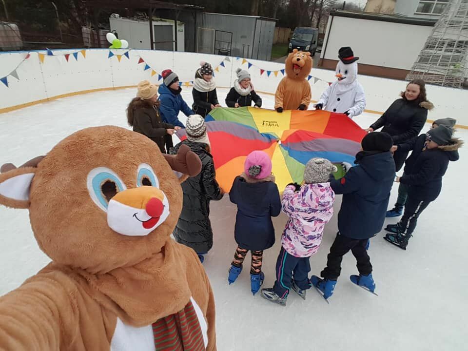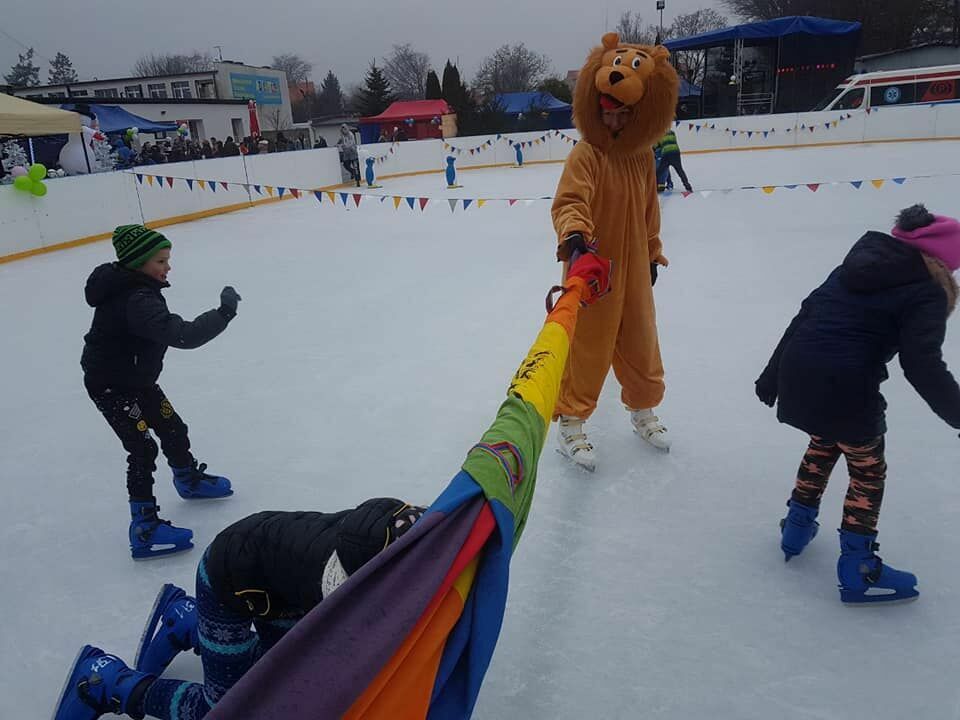 Wynajem animatorów na lodowisku w strojach karnawałowych, żywe maskotki, prowadzenie animacji na lodowisku, gry i zabawy, tańcebal karnawałowy na lodowisku