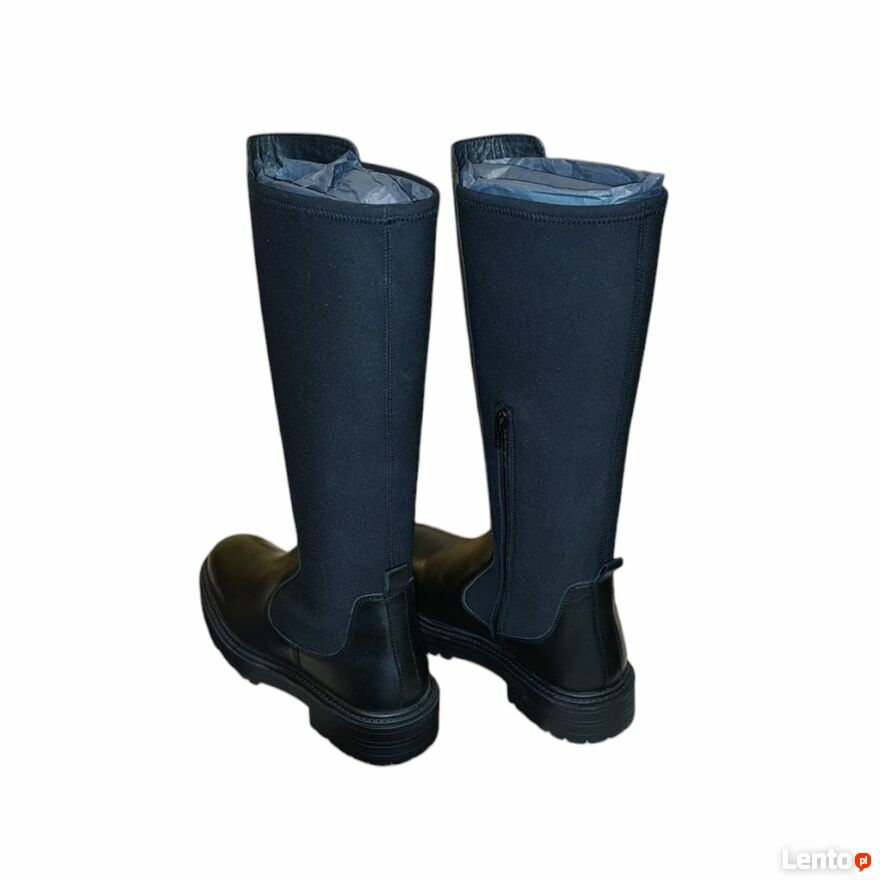 Opis - oficerki wykonane z naturalnej skóry w czarnym kolorze, zaokrąglony czubek wyściełana elastyczna gruba podeszwa o grubości 4 cm, z tyłu rozciągliwy materiał.