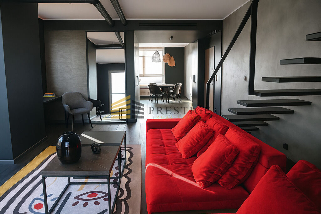 Dwupoziomowe studio na Żoliborzu.Widok na całą panoramę Warszawy z dwóch tarasów.