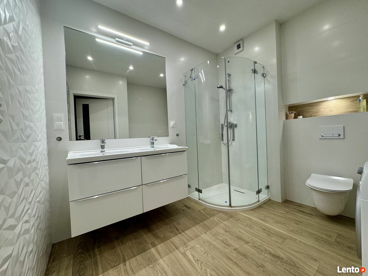 Mieszkanie w pełni wyposażone, posiada wszystkie potrzebne AGD, wszystkie meble robione na zamówienie pod wymiar, stolarka okienna firmy Roto.