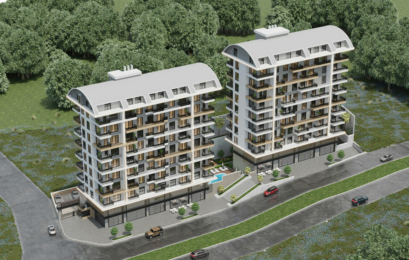 KURT TWIN TOWERS to nowy kompleks mieszkaniowy zlokalizowany w dzielnicy Mahmutlar, składający się z 90 apartamentów. Inwestycja powstaje na ogrodzonym terenie o powierzchni 2 935 m² i oferuje bogatą infrastrukturę społeczną dla mieszkańców.Zewnętrzna infrastruktura kompleksu: