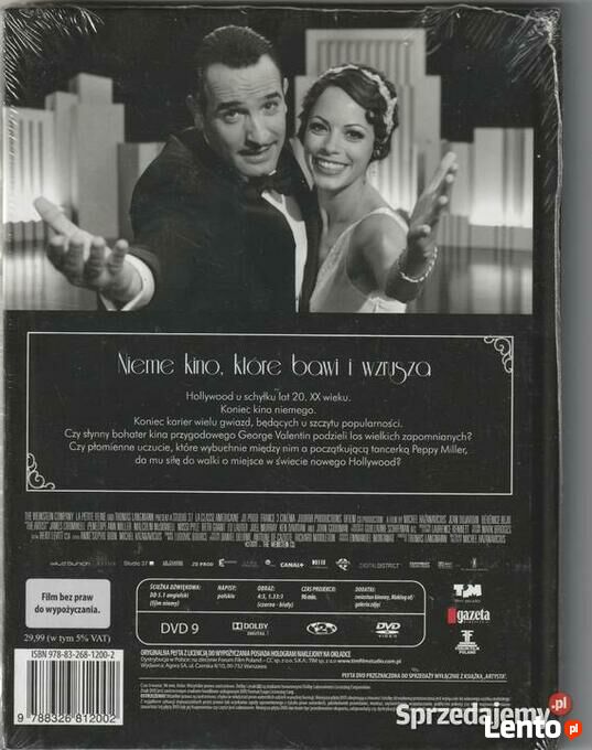 Artysta (booklet) [DVD] The Artist Kraj: Francja Rok produkcji: 2011 Reżyseria: Michel Hazanavicius Scenariusz: Michel Hazanavicius Muzyka: Ludovic Bource Obsada: Malcolm McDowell, John Goodman, James Cromwell, Ed Lauter, Beth Grant, Missi Pyle, Tim DeZarn, Sergio Kato, Annie O'Donnell, Penelope Ann Miller, Ken Davitian, Stuart Pankin, Basil Hoffman, Joel Murray, David Dustin Kenyon, Bob Glouberman, Jean Dujardin, Calvin Dean, Michael Laren, ... Studio: Warner Bros Opis Rok 1927, Hollywood. Gwiazda kina niemego, George Valentin, obawia się, że pojawienie się dźwięku w filmie oznacza koniec jego kariery. Pomaga wybić się młodej tancerce, Peppy Miller. Stan produktu Produkt ORYGINALNY. Płyta NOWA. Tytuł: Artysta (booklet) Dział: DVD Kraj wydania: Polska Oscary: 5 Nominacje do Oscara: 10 Kategoria wiekowa (MPAA): PG-13 Czas trwania: 96 min. Dodatki: bezpośredni dostęp do scen Napisy: polskie Dźwięk: Dolby Digital 5.1 angielski Polska wersja: napisy Region DVD: 2 Opakowanie: booklet Liczba nośników: [1xDVD] + [1xKSIĄŻKA] Karton 83 Ogłoszenie jest aktualne dopóki znajduje się na stronie . Odbiór osobisty lub wysyłkaSprawdź zainteresowanie tym ogłoszeniem