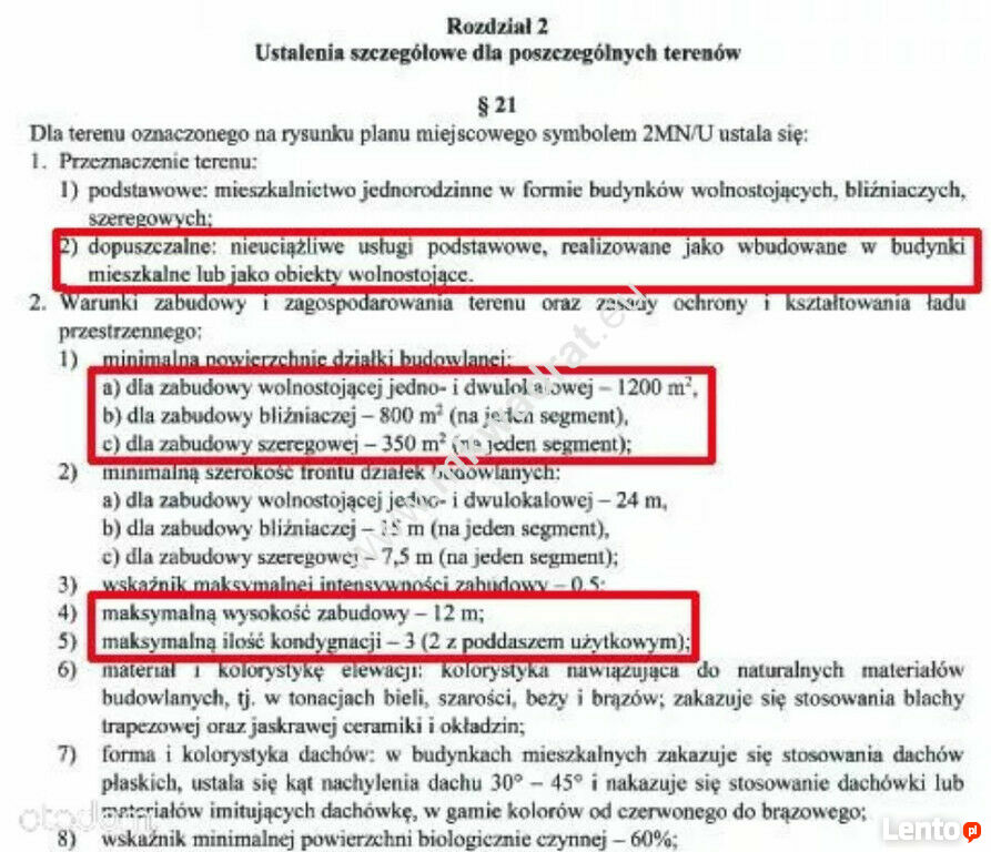 - dla zabudowy szeregowej - 350 mkw