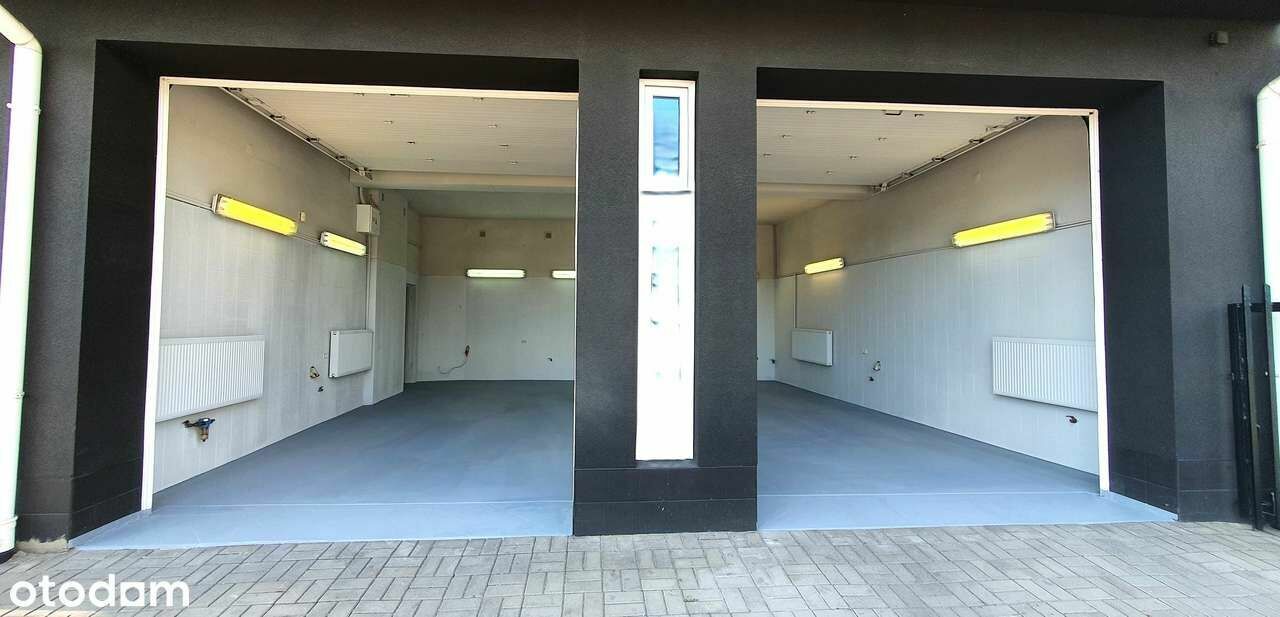Parter - 160m2 trzy stanowiska z oddzielnymi wjazdami z możliwością powiększenia (likwidacja ściany działowej), salon - biuro ( klimatyzacja) z dużymi oknami antywłamaniowymi, WC z łazienką, pomieszczenie socjalne, mały magazynek, 400V, 230V, instalacja powietrzna. Wysokość pomieszczeń 330cm, Drzwi wjazdowe 300x300cm.