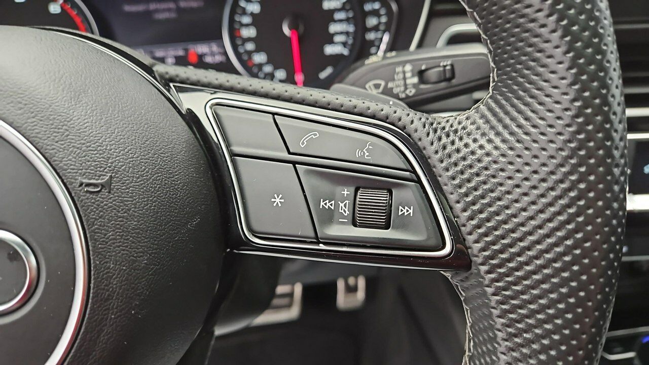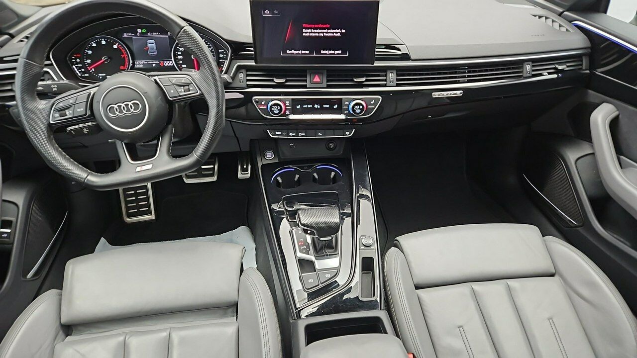 Wyposażenie dealerskie: Audi hold assist, Audi lane assist, Audi pre sense basic, boczne poduszki powietrzne tył, dach panoramiczny szklany, składana wykładzina bagażnika, dynamiczny układ kierowniczy, elementy dekoracyjne lakier fortepianowy czarny Audi Exclusive, fotele przednie regulowane elektrycznie z pamięcią kierowcy oraz regulacją pneumatyczną lędźwi i funkcją masażu, HomeLink, kamery 360°, kierownica wielofunkcyjna plus spłaszczona u dołu, kluczyk komfortowy z gestem otwierania bagażnika, koło zapasowe dojazdowe z podnośnikiem, lakier specjalny Audi Exclusive, lusterka boczne elektryczne, składane, auto przyciemniane, ogrzewane spryskiwacze i pamięć, obudowy lusterek czarne połysk, osłony przeciwsłoneczne rozszerzane, pakiet bezpieczeństwa dla dzieci (ISOFIX przód).