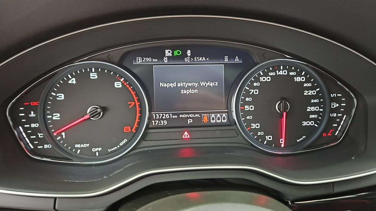 Podsufitka czarna, przygotowanie do haka, reflektory Matrix LED z technologią laserową i układem zmywania, rozpoznawanie znaków drogowych, zaciski hamulców czerwone, zawieszenie komfortowe z regulacją tłumienia, zestaw narzędzi z podnośnikiem, śruby zabezpieczające do kół, rezygnacja z oznaczenia pojemności.