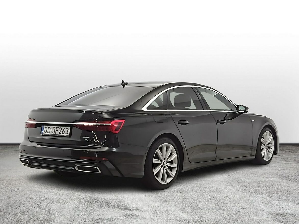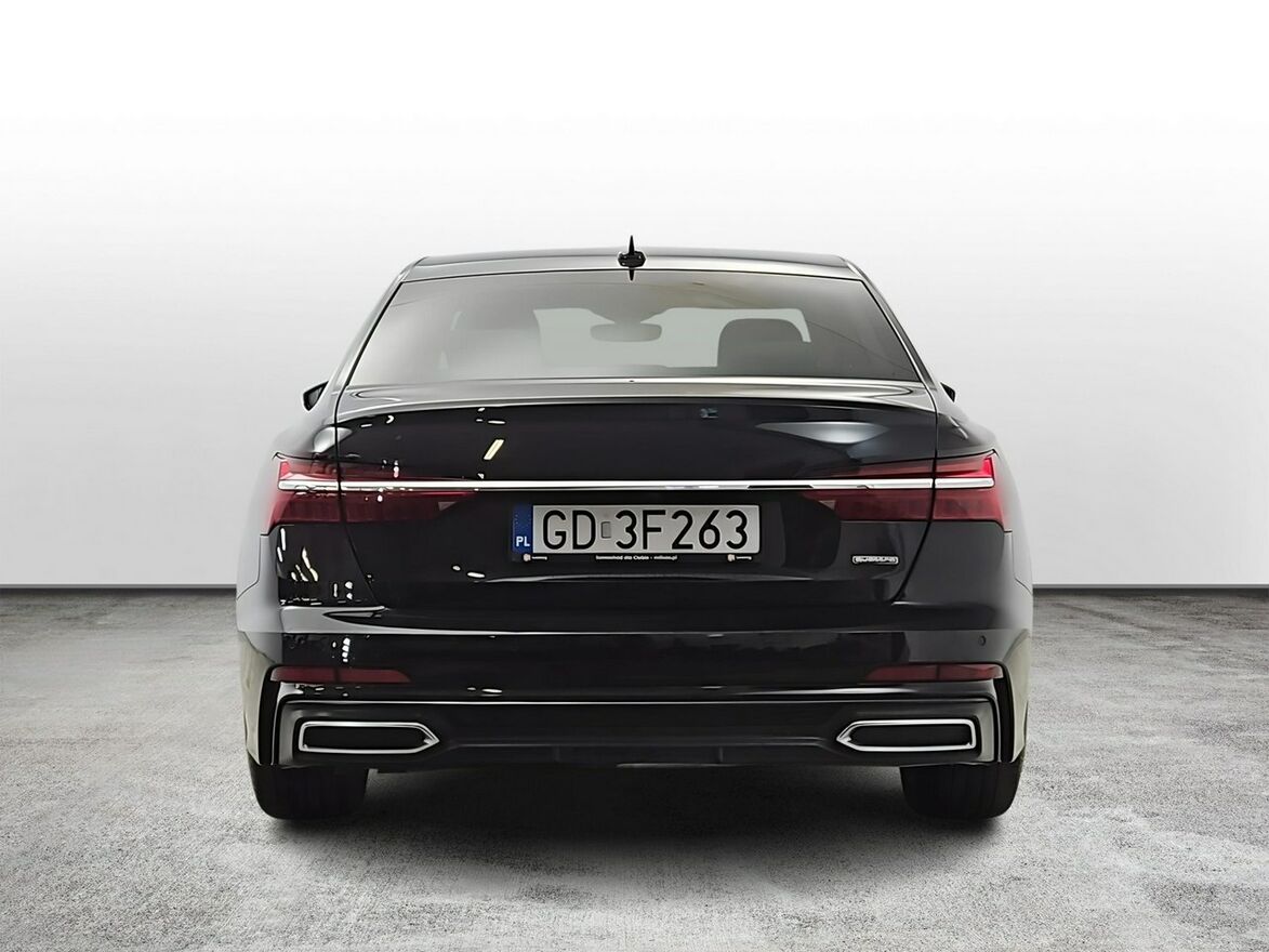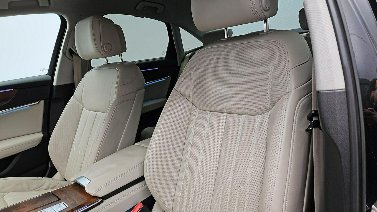 Aplikacje dekoracyjne wnętrza – drewno orzech Naturell, Asystent parkowania Audi Parking System Plus (przód/tył), Audi Connect key, Audi Connect (monitorowanie pojazdu), Brak oznaczeń mocy/modelu, Dwuczęściowa deska rozdzielcza, Fotele konturowe z pamięcią, Wentylacja foteli przednich, Kierownica sportowa ze spłaszczonym wieńcem, Koło zapasowe dojazdowe, Lakier metalik Czarny Mythos, Ogrzewanie postojowe, Pakiet dodatkowych schowków, Pakiet oświetlenia konturowego/ambiente (6 profili, 30 kolorów), Pakiet Business (czujniki parkowania + kamera cofania), Pakiet Comfort (Audi Phone Box, tylna kanapa składana, klimatyzacja 4-strefowa, kluczyk komfortowy, tapicerka częściowo skórzana, elektryczne domykanie drzwi), Pakiet Exterieur (felgi 19", S line Exterieur), Pakiet Technology (Side Assist, Smartphone Interface, Virtual Cockpit Plus, Audi Sound System, Head-Up Display), Pakiet skórzany (dół – skóra ekologiczna), Pakiety asyst miejskich i parkowania, Panel dotykowy z aluminium, Boczne poduszki powietrzne 2. rzędu, Reflektory Matrix LED z dynamicznymi kierunkowskazami, Ogrzewana szyba przednia akustyczna, Szyby tylne przyciemnione, Spryskiwacze reflektorów, Elektryczna klapa bagażnika, LTE dla Audi Phone Box, Regulowane zagłówki, Zawieszenie pneumatyczne Adaptive Air Suspension, Zbiornik AdBlue 24 l, Zbiornik paliwa 73 l, Zestaw narzędzi z podnośnikiem, Śruby zabezpieczające koła, Elektryczna roleta tylnej szyby (Limuzyna).