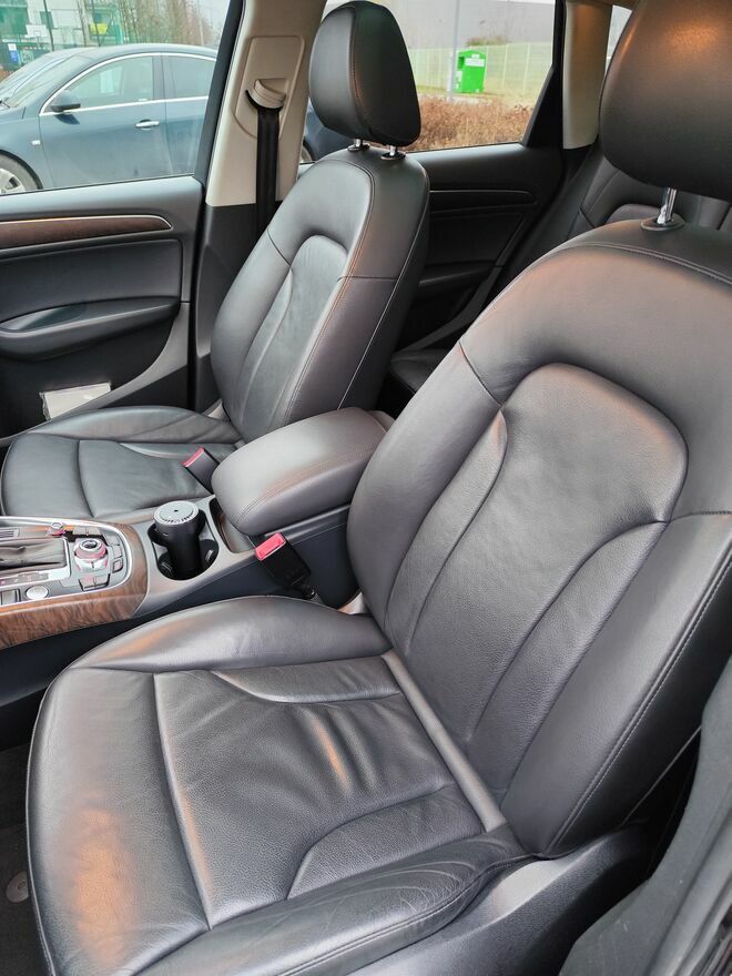 Q5 wyróżnia się pięknym lakierem w kolorze ciemnego grafitu z nutą gorzkiej czekolady (tak to określa moja żona) – kolor prezentuje się świetnie na żywo. Jest atutem auta.