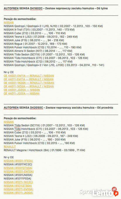 NISSAN Qashqai / Qashqai+2 I (J10, NJ10) ( 02.2007 - 12.2013 , 103 - 150 KM) NISSAN X-Trail (T31) ( 03.2007 - 11.2013 , 140 - 173 KM) NISSAN Cube (Z12) ( 03.2010 - ... , 106 - 110 KM) NISSAN Teana II (J32) ( 07.2008 - 09.2013 , 182 - 249 KM) NISSAN Juke (F15) ( 06.2010 - ... , 94 - 218 KM) NISSAN Rogue ( 01.2007 - 12.2013 , 169 - 173 KM) NISSAN Pulsar Hatchback (C13) ( 10.2014 - ... , 110 - 190 KM) NISSAN Almera III Sedan (N17) ( 08.2014 - ... , 117 KM) NISSAN Tiida Sedan (SC11X) ( 01.2007 - 12.2012 , 103 - 126 KM) NISSAN Tiida Hatchback (C11) ( 03.2007 - 06.2013 , 103 - 126 KM) NISSAN Tiida Hatchback (C12) ( 08.2012 - ... , 117 KM) NISSAN Qashqai / Qashqai+2 I Van (J10, JJ10E) ( 03.2013 - 04.2014 , 110 - 141) Nr-y OE OE 44001-EM11A — RENAULT / NISSAN OE 44011-EM11A — RENAULT / NISSAN OE 44001-1KD0A — RENAULT / NISSAN OE 44011-1KD0A — RENAULT / NISSAN OE 44001-JG00A — NISSAN OE 44011-JG00A — NISSAN