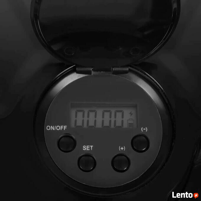 SPECYFIKACJA - kolor: czarny; ilość komór: 6; zasilanie: 3xAA; pojemność komory: 150ml; ustawienie czasowe: 1min-24h; wymiar: 30/30/6cm; waga: 0,94kg; waga w opakowaniu: 1,181kg.