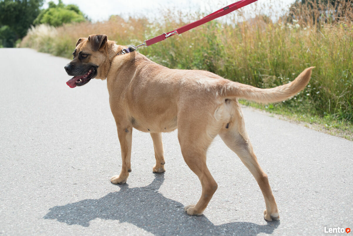 Kilkuletnia Azula w typie molosa, ale drobniejsza.Przecudowna, łagodna sunia. Kocha ludzi.