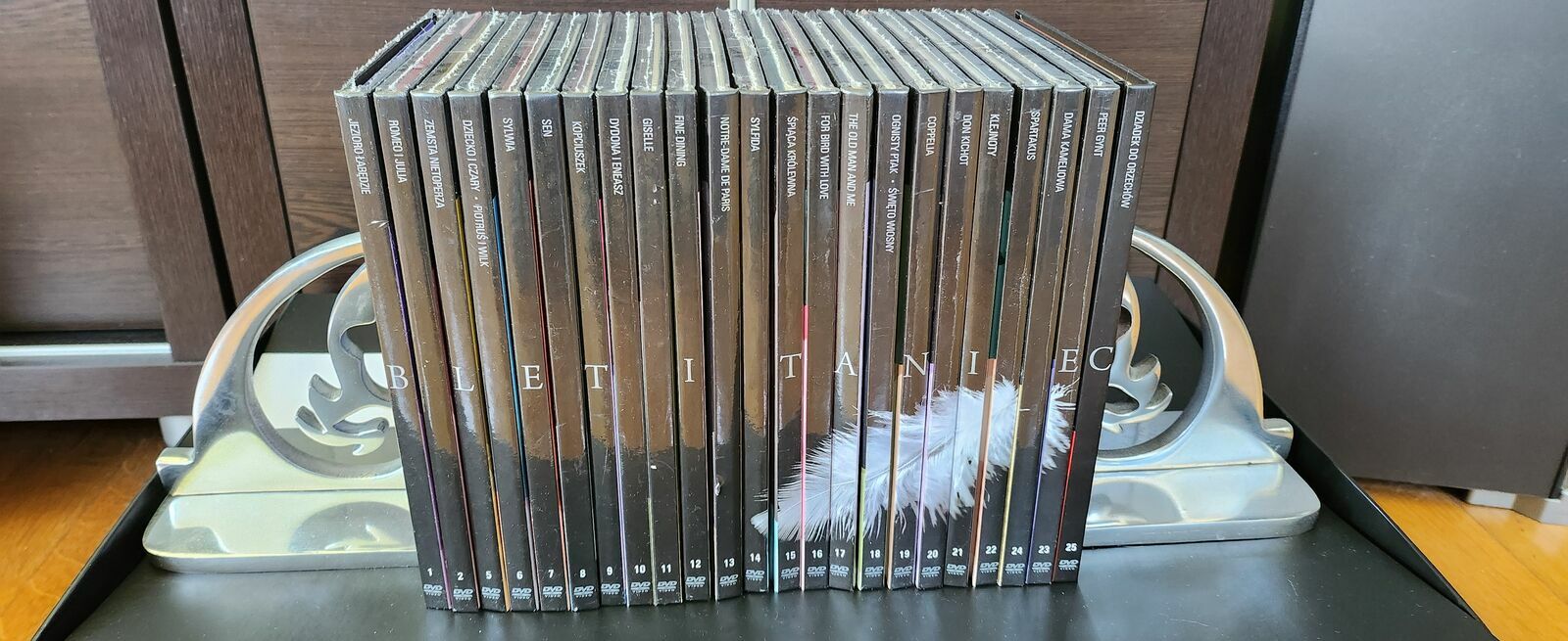 "ogłoszenie widoczne = AKTUALNE"Balet i taniec 23 książeczki z płytami DVD. W kolekcji brak tomów 3 i 4. Tom 25 odfoliowany, płyta w bardzo dobrym stanie. Pozostałe 22 książeczki firmowo zafoliowane. Kolekcję sprzedaję w całości.