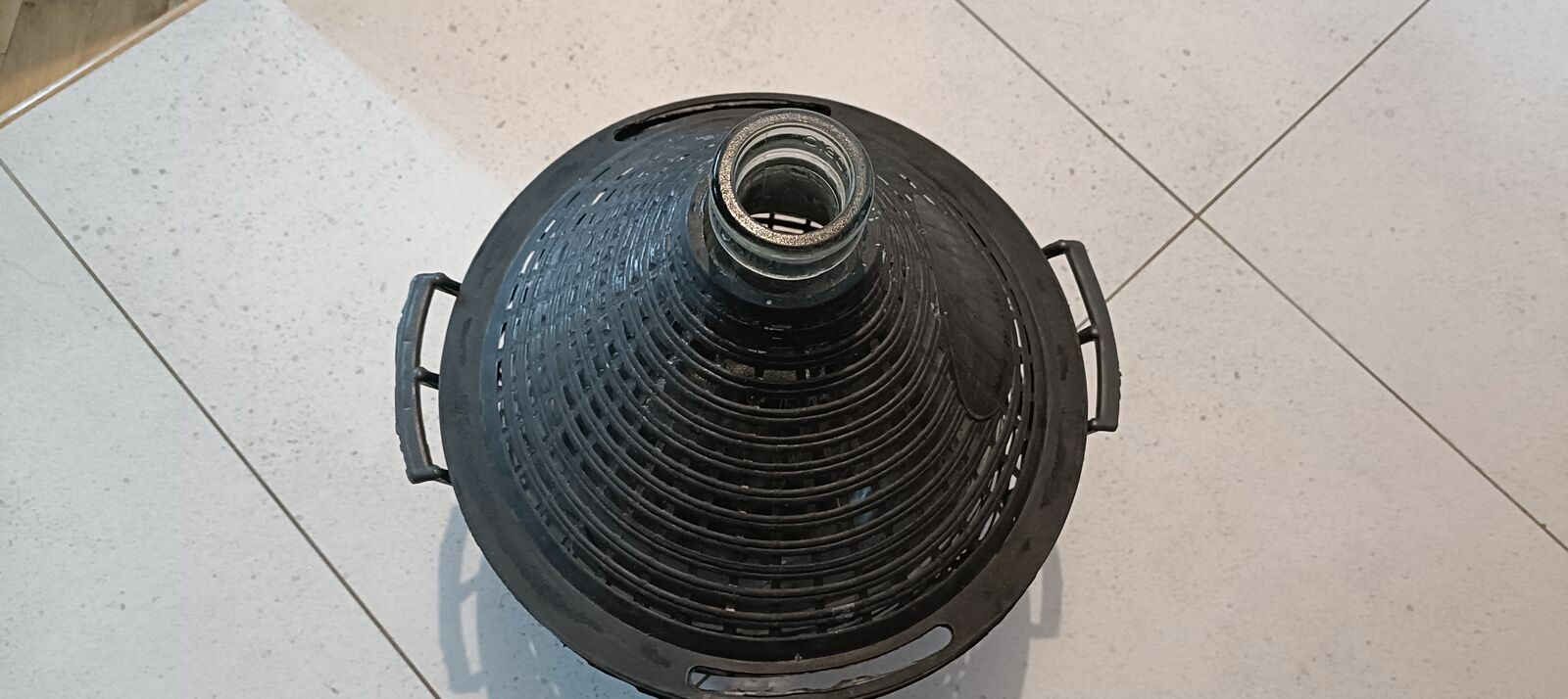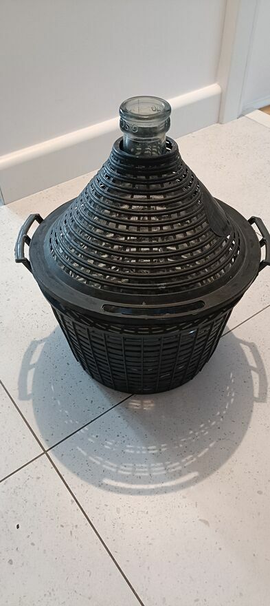 Używany gąsior Ambrosio o pojemności 10l. Wykonany z grubego szkła który opatulony jest z plecionego materiału(plastik )który nadaje mu oryginalny wygląd. Przydatny do przechowywania i transportowania wina lub innych napojów.Przedmiot jest używany i jest do wyczyszczenie