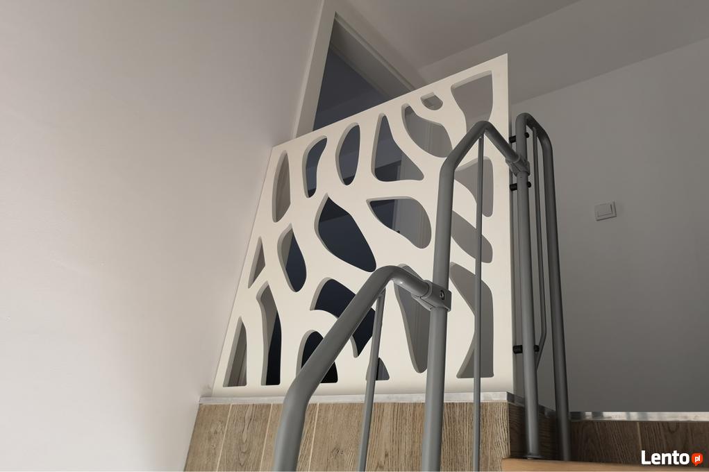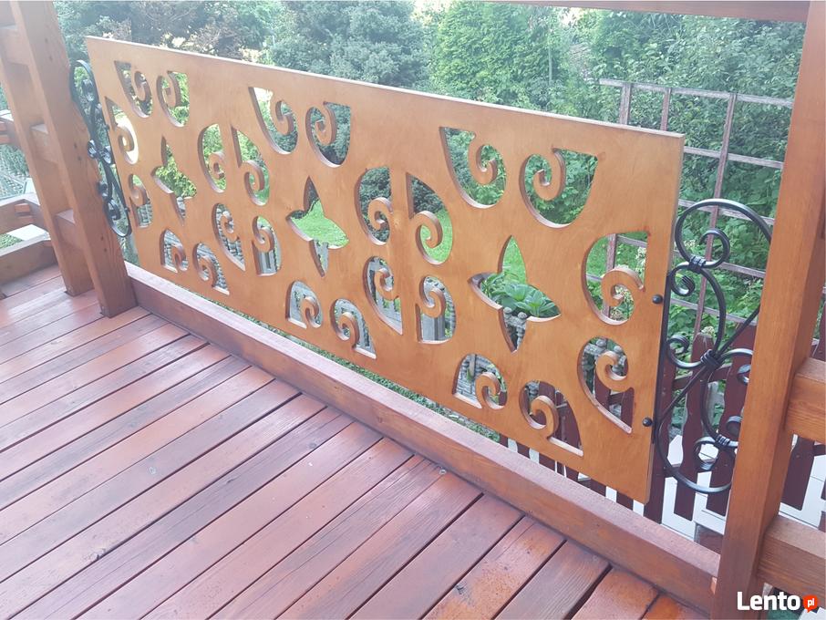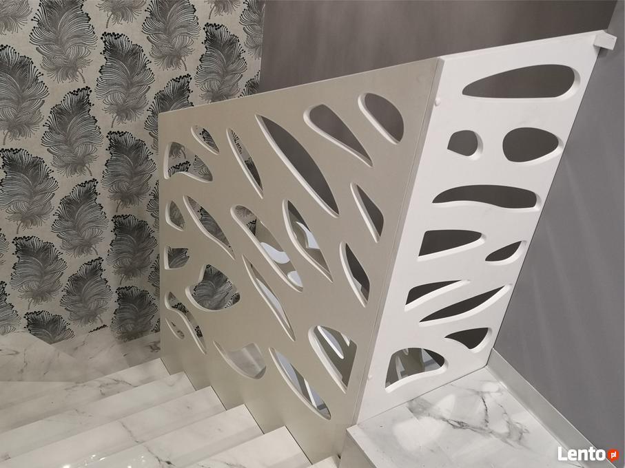 Gruba i solidna balustrada ozdobna z płyty meblowej MDF o grubości 18 lub 22 mm.Kilkadziesiąt wzorów wypełnienia do wyboru.