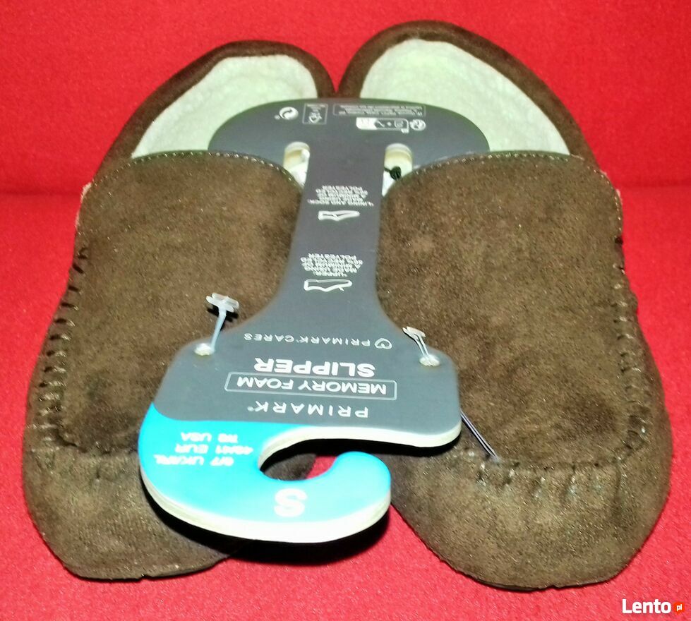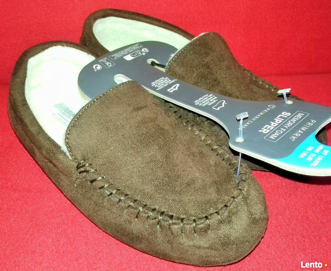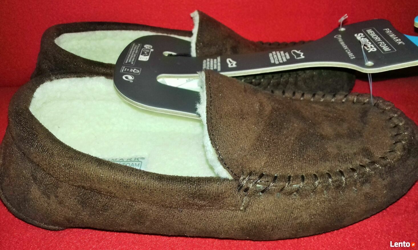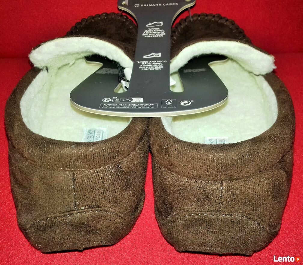 Modne, brązowe kapcie mokasyny marki Primark.Starannie wykonane z przyjemnych w dotyku materiałów.