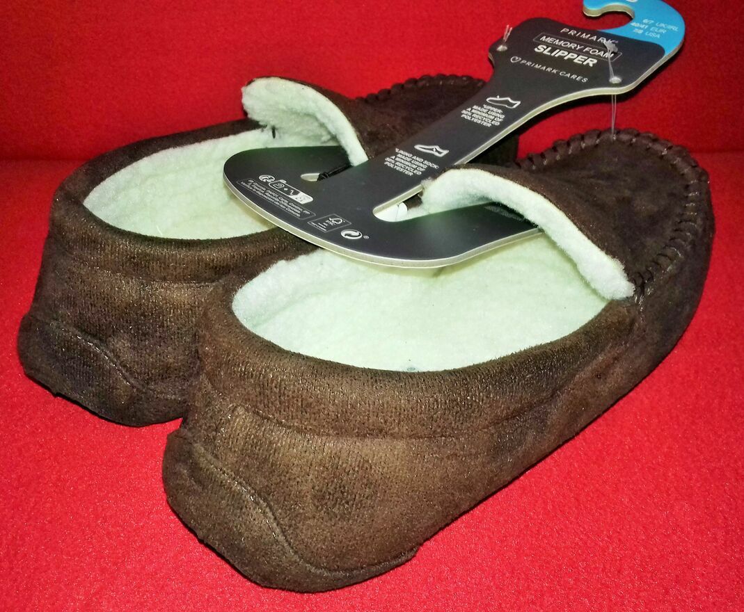 Modne, brązowe kapcie mokasyny marki Primark.Starannie wykonane z przyjemnych w dotyku materiałów.