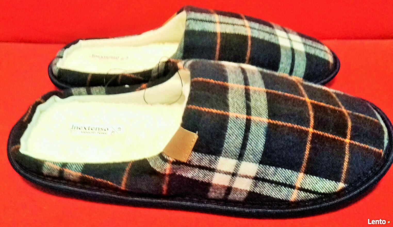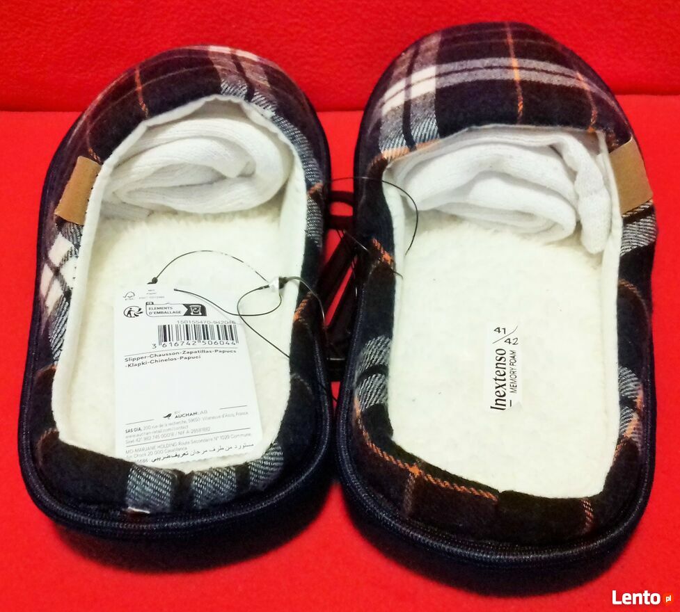 Kapcie krata futerko miękkie ciepłe 41/42Ładny, miły w dotyku, kolorowy materiał ze wzorem modnej kraty.