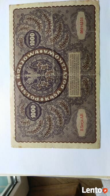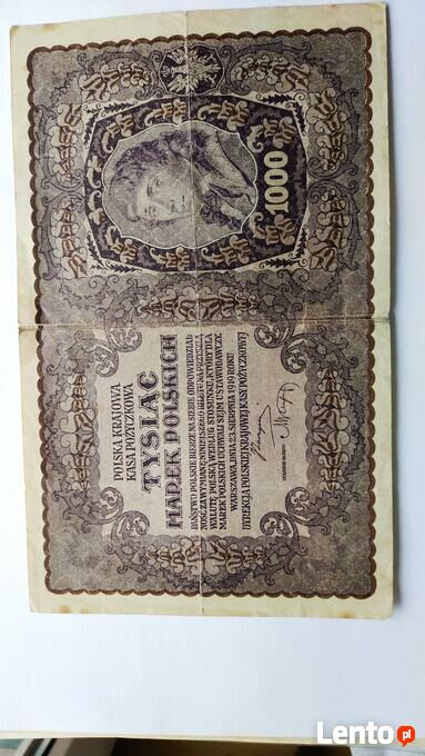 Banknot Marka Polska o wartości 1.000 z 1919 roku Stan idealny.Osoby zainteresowane proszę o kontakt telefoniczny 602 - pokaż numer telefonu -