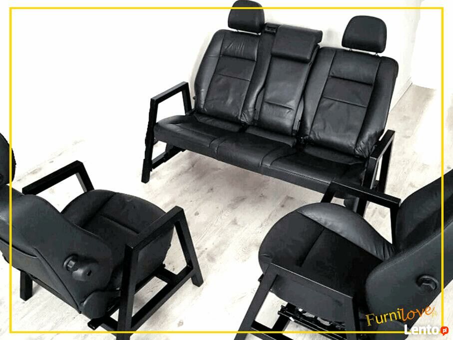 Specjalizujemy się w meblach Industrialnych, więc uzupełnieniem do stołu, biurka, witryny będzie miękki mebel wypoczynkowy.Do konstrukcji stalowej jest zamontowana kanapa samochodowa, która jest meblem rozkładanym i może mieć schowek pod siedziskiem oraz za oparcie.