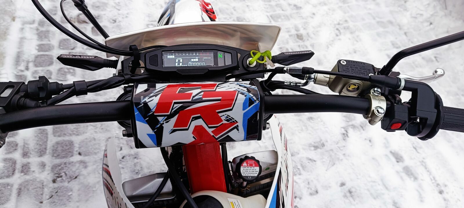 DANE TECHNICZNE: POJEMNOŚĆ: 125cc (HOMOLOGACJA DROGOWA POJAZD MOŻNA ZAREJESTROWAĆ) Taktowanie i cylindry: 4T, jednocylindrowy Zapłon: EFI System chłodzenia: chłodzony cieczą (2-chłodnice) Moc maksymalna: 15 KM. Rozruch: elektryczny (starter) Skrzynia biegów: manualna 6 biegowa Oświetlenie: LED Amortyzatory przednie: odwrócony widelec hydrauliczny upside-down regulowane Amortyzator tylni: monoshock gazowy regulowany Wymiary: długość-2295mm, wysokość-1450mm, szerokość: 860mm Prześwit: 310mm Wysokość siedziska: 960mm Rozstaw osi: 1500mm Waga: 121 KG Felga przednia: szprychowa 21" Felga tylna: szprychowa 18" Opona przednia: 90/90-21 (przystosowana do jazdy w ruchu drogowym) Opona tylna: 120/90-18 (przystosowana do jazdy w ruchu drogowym)