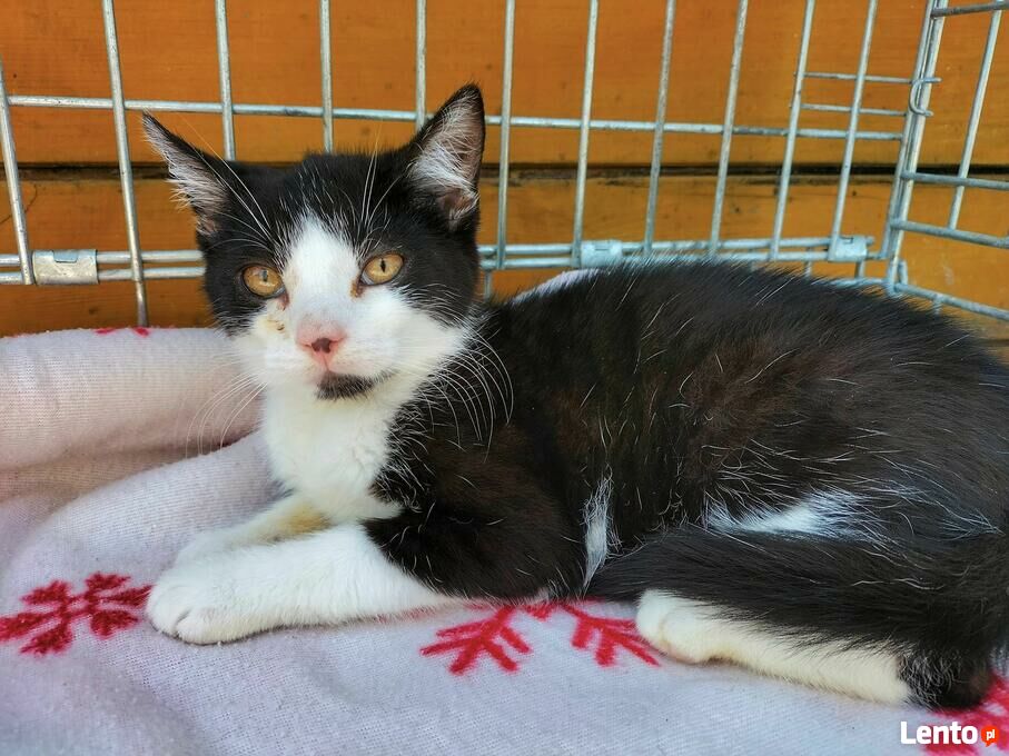 Na dzień dzisiejszy ma około 4 miesięcy, lubi towarzystwo innych kotów.
