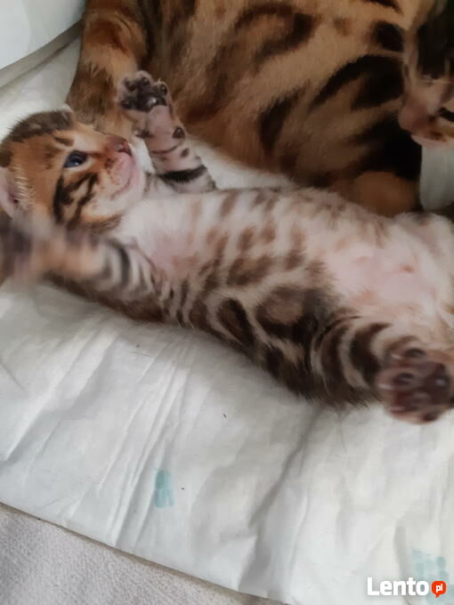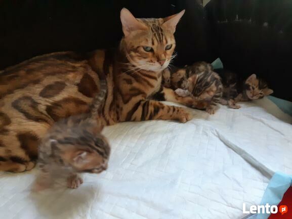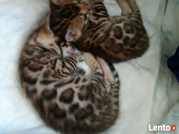 Hodowla Kotow Bengalskich Felicity Cat’s*PL zaprasza miłośników kotów bengalskich do rezerwacji kociaczków urodzonych pod koniec lipca b r .Kocięta są masci BEN 24 i jedna koteczka BEN n22. Sa to piękne rozety i wzór marmurkowy. Sierść kociaków jest niezwykle miękka w dotyku, wręcz jedwabista.Kocięta mają doskonałe pochodzenie/ m.in.wiodące linie kanadyjskie,amerykańskie i europejskie../Dbałość o dobór partnerów dla moich kotek gwarantowała do tej pory najwyższą ich ocenę w zakresie budowy, umaszczenia i rewelacyjnego charakteru .