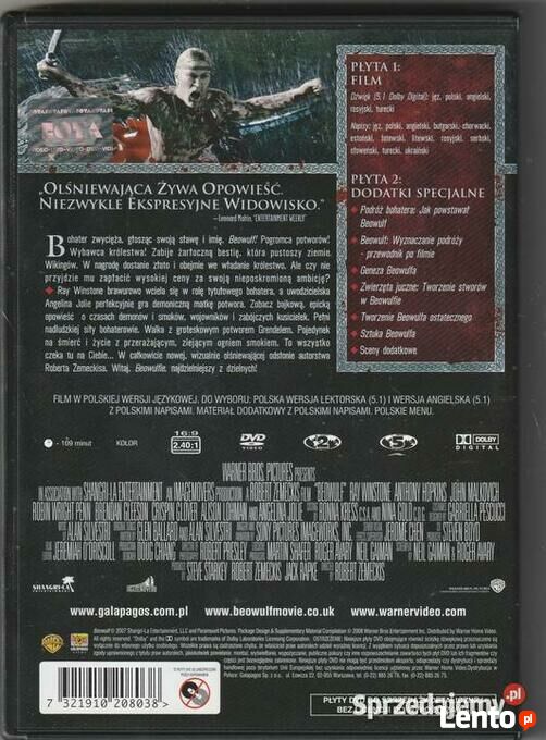 Płyta w prawie idealnym stanie. Tytuł aukcji/filmu BEOWULF Reżyser: Robert Zemeckis Obsada: Ray Winstone, Angelina Jolie, Anthony Hopkins, John Malkovich, Robin Wright Penn Rok produkcji: 2007 Czas: 109 min. Dodatki: Bezpośredni dostęp do scen , sceny dodatkowe - Podróż bohatera: jak powstawał Beowulf, geneza Beowulfa, Beowulf: wyznaczanie podróży, tworzenie Beowulfa Dźwięk: Dolby Digital : 5,1 angielski,polski (lektor) 5,1 ,rosyjski,turecki Napisy: polskie ,angielskie, bułgarskie, chorwackie, estońskie, litewskie, łotewskie, rosyjskie, serbskie, słoweńskie, tureckie, ukraińskie Obraz: 16;9 Licencja: Płyta bez praw do wypożyczania Stan płyty: Nowa w folii Opis: W legendarnych czasach herosów, potężny wojownik Beowulf przybywa na dwór duńskiego króla by walczyć z demonem Grendelem . Zabicie potwora sprowadza na niego gniew jego uwodzicielskiej lecz bezlitosnej matki. Niezwykła saga herosów w świecie fantazji i brawurowej odwagi. Karton 95 Ogłoszenie jest aktualne dopóki znajduje się na stronie . Odbiór osobisty lub wysyłkaSprawdź zainteresowanie tym ogłoszeniem