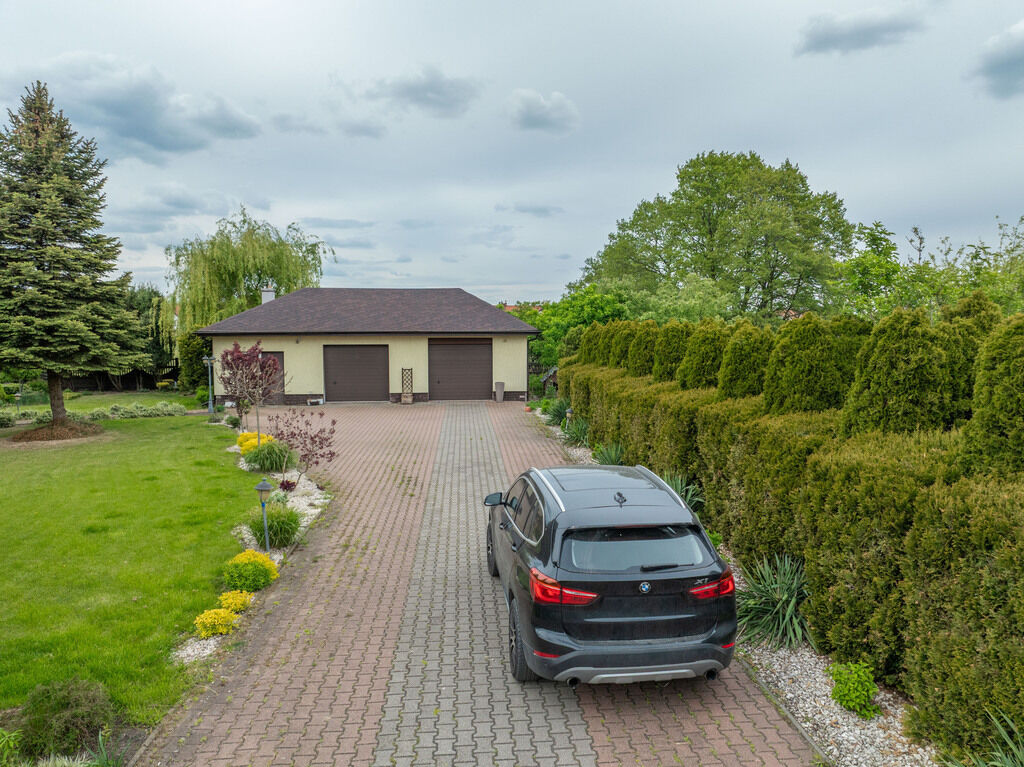 zadbaną zielenią, z pełnym ogrodzeniem i reprezentacyjnym wjazdem.