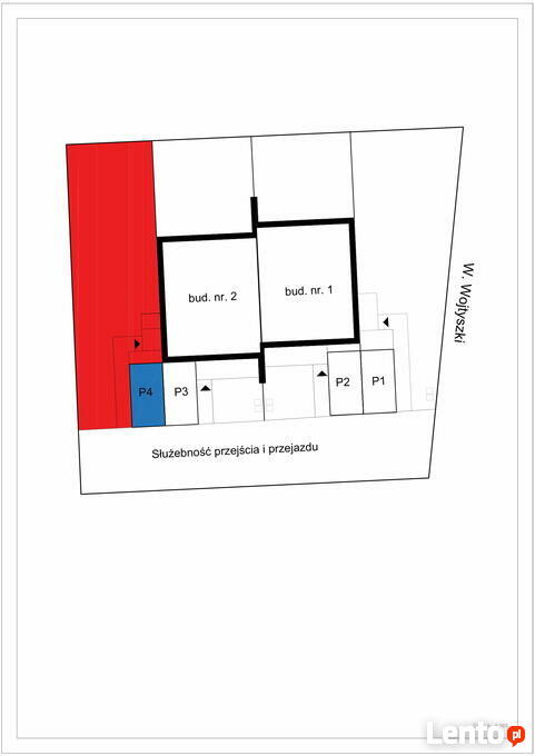 Apartament nr D znajduje się w drugim budynku od ulicy Wojtyszki.