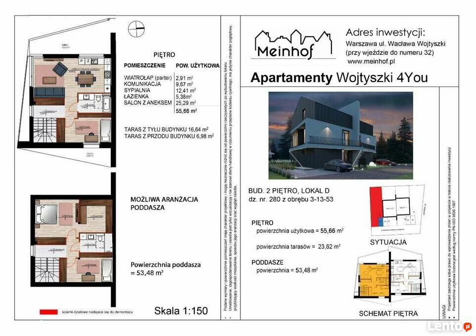 Wszelkie szczegółowe informacje odnośnie dewelopera jak i naszej nowej inwestycji, opisy, rzuty lokali 2D i 3D, karty ogródków, zdjęcia z budowy oraz ceny znajdą Państwo na naszej stronie internetowej W W W. M E I N H O F. P L