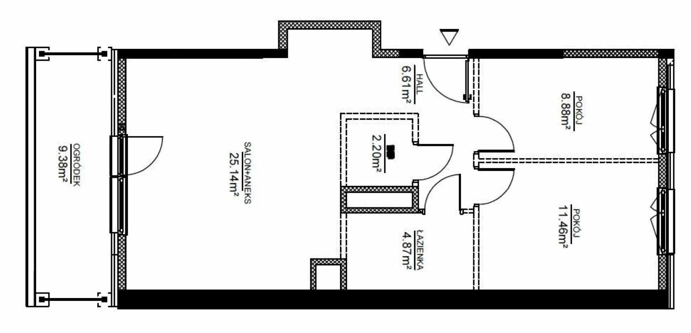 • Ogródek/taras: (9,38 m²)