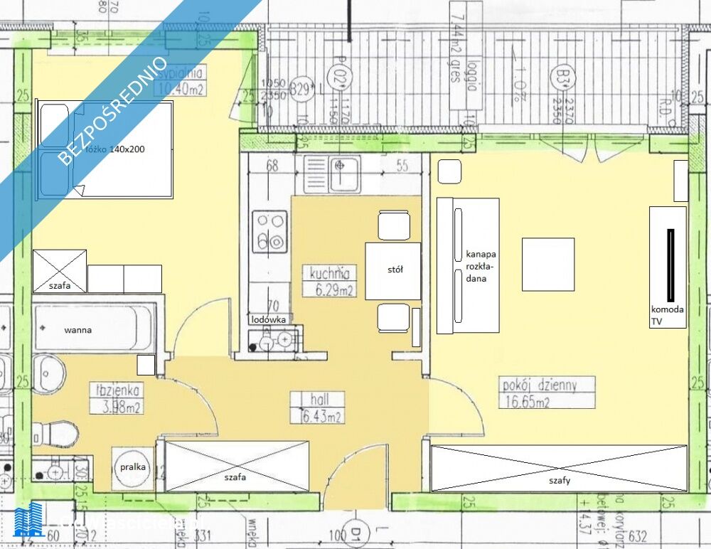English version at the bottom!BEZPOŚREDNIO - bez prowizji agencji! rozkładowe mieszkanie ok 45 mkw z oddzielną kuchnią (2 osobne pokoje) i z dużą loggią (ok 7,5mkw) na którą wejście jest z obu pokoi. Całość kosztów ok 4500zł/m-c.