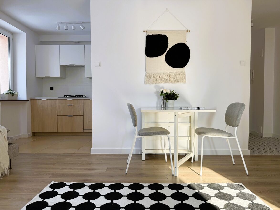 Idealny układ pomieszczeń, 3 pokoje na 47 metrach, z czego każdy pokój jest widny i ustawny. Do tego kuchnia, również z oknem, połączona z salonem.