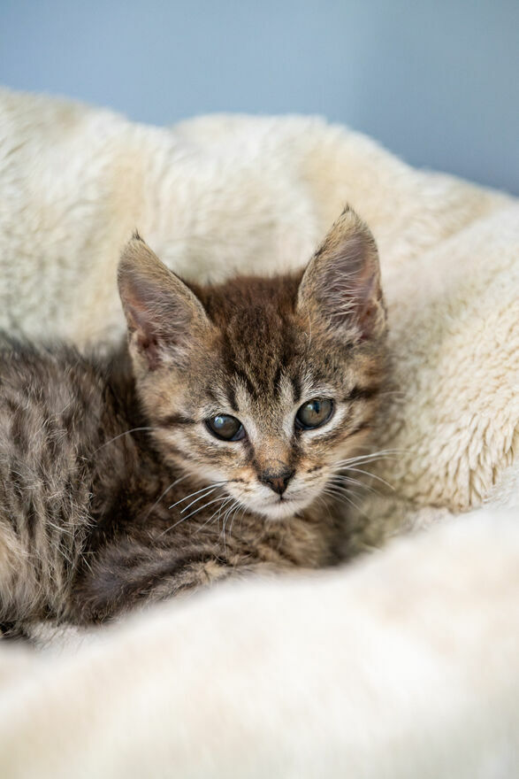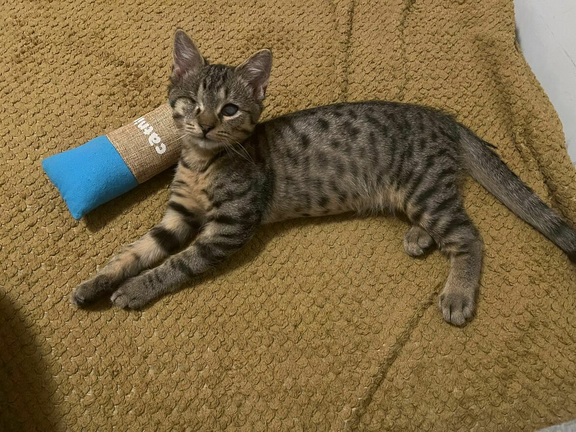 Kliper - uroczy, bury kocurek urodzony w maju 2025 roku.Los nie był dla niego łaskawy – przez ciężki koci katar stracił jedno oczko, a drugie jest w trakcie diagnozy. Ale wcale go to nie zatrzymuje!
