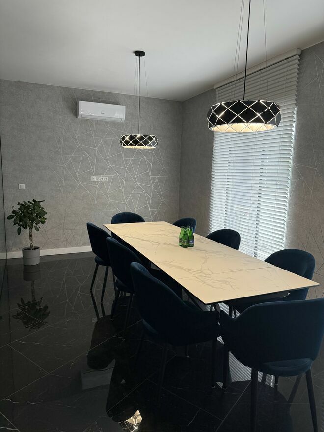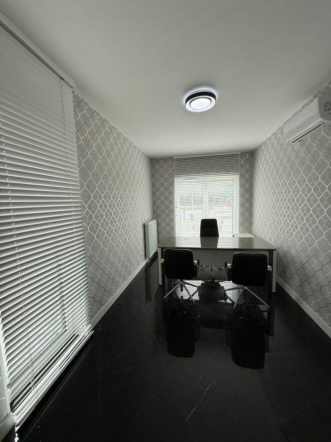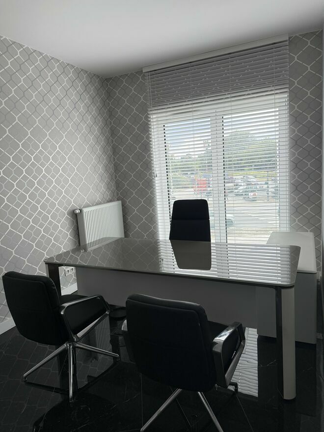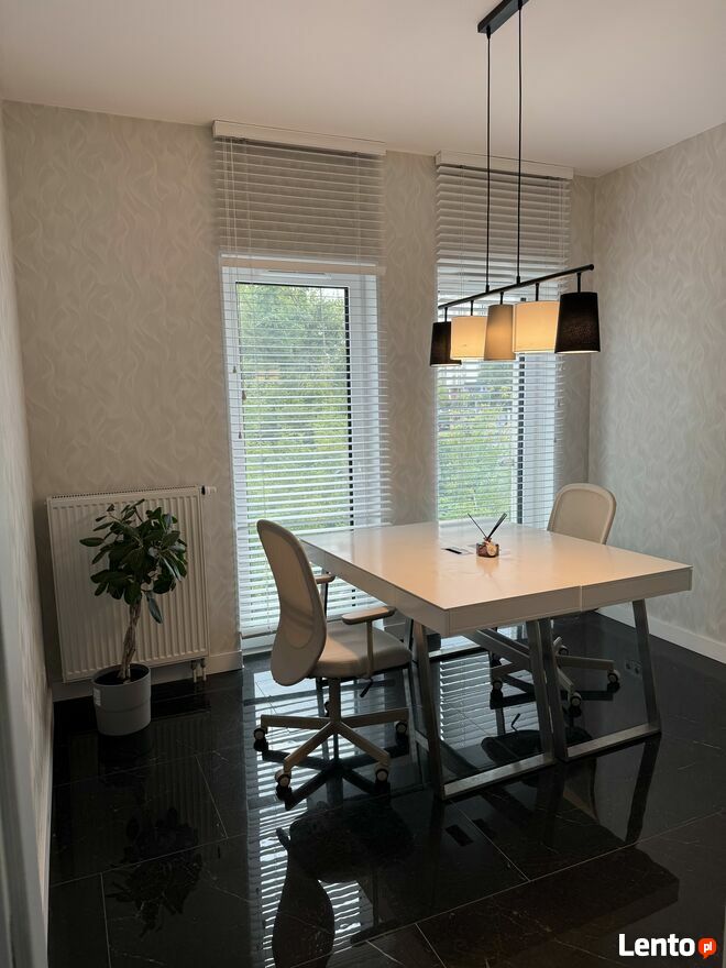 Biuro jest w pełni umeblowane, wyposażone w klimatyzację i gotowe do pracy