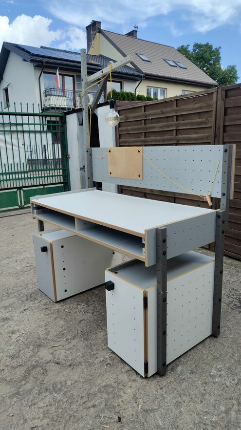 Młodzieżowe, porządne biurko VOX Smart wyposażone w dwie zamykane szafki, panel do zagospodarowania oraz lampkę na konstrukcji. Ciekawy design.Do zestawu posiadam jeszcze łóżko 90x200 z wysuwanym drugim łóżkiem