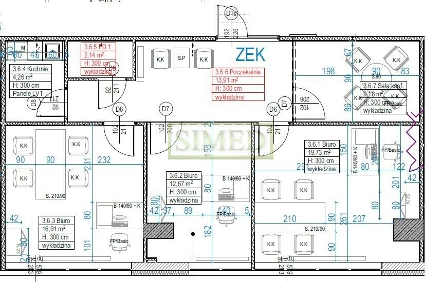każde biuro na powierzchni ma aneks kuchenny (lodówka, zmywarka,