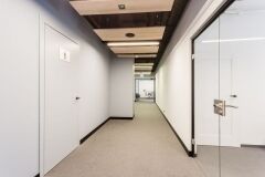 Warto docenić przeszklone wejścia do poszczególnych modułów z