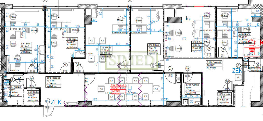 każde biuro na powierzchni ma aneks kuchenny (lodówka, zmywarka,