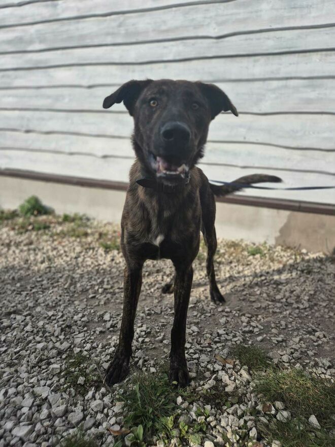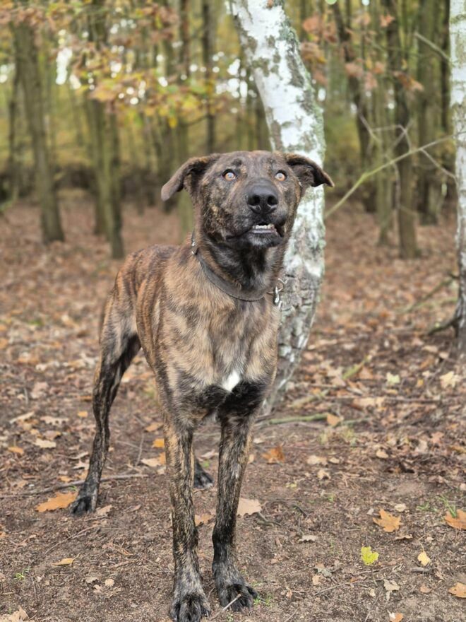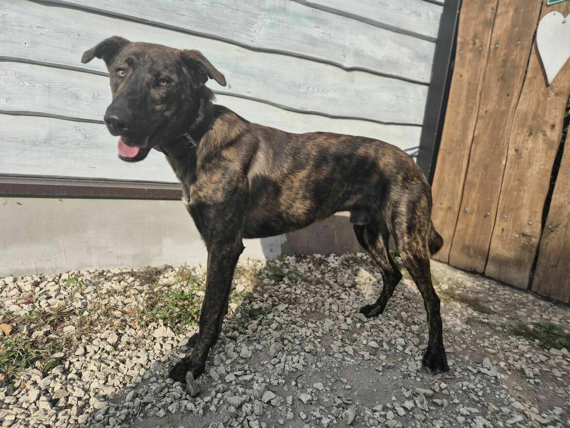Blum - młody, wychowany z dziećmi, aktywny pręgus!Blum to młodziutki psiak, piękny, pręgowany, prawdopodobnie ma w swoim rodowodzie jakiegoś chartopodobnego.