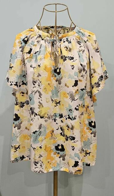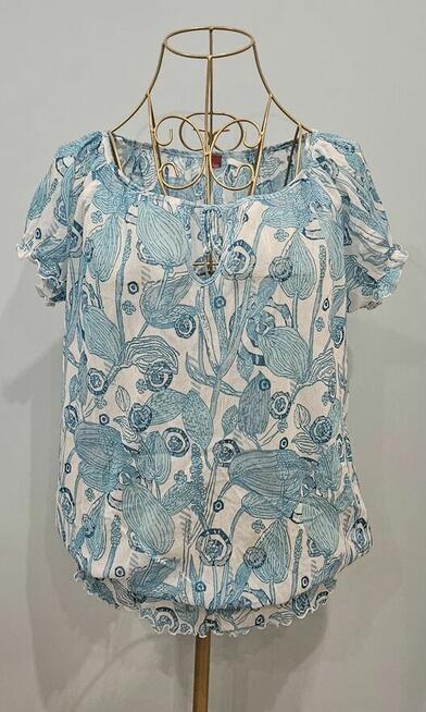 Bluzka Echo Made in Poland rozm 42(L) z żabotem i kwiatem bawełna 100% Bawełna 100% Założona tylko RAZ Pasuje ...