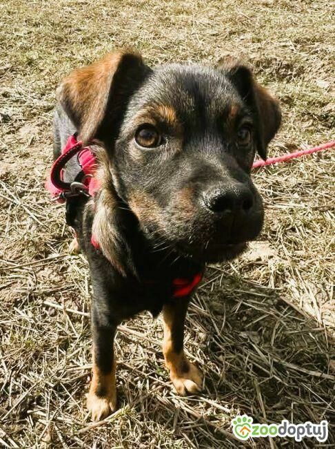 To bardzo wycofany i przestraszony maluch, który będzie potrzebował cierpliwego, spokojnego domu i pracy od podstaw, aby nauczyć się, że człowiek może być dobry.