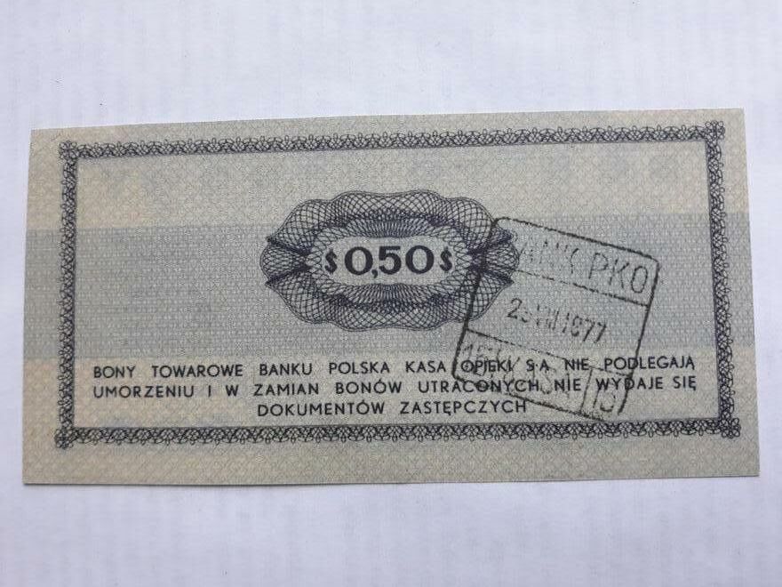 Bon towarowy 50 centów (kopia ?) z 1969r
