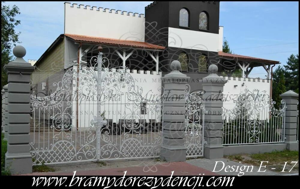 Do bramy dostepne są również słupy ażurowe kute a także przęsła ogrodzeniowe .