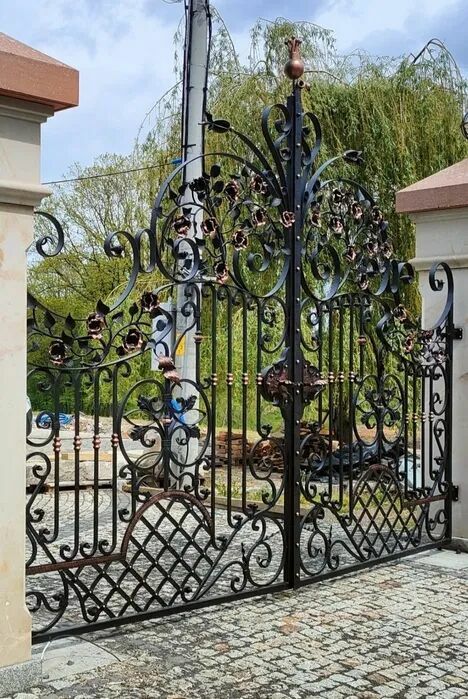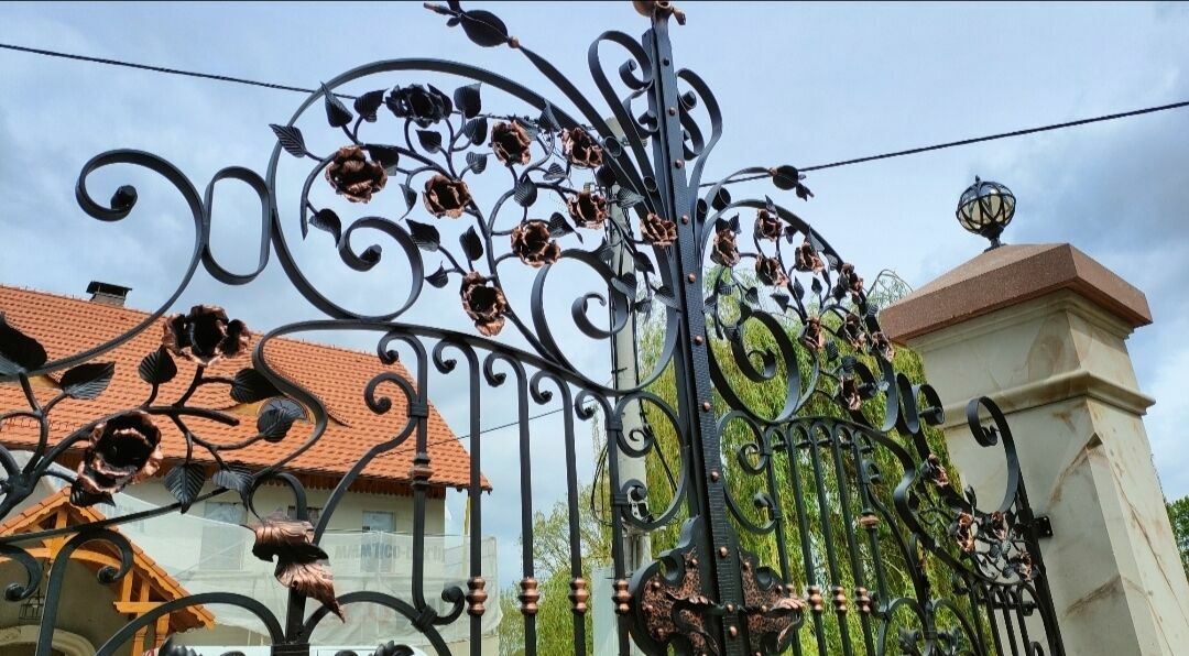 Szanowni PaństwoOferuję Ekskluzywny ręcznie kuty komplet bramy wraz z furtą,wykonany w całości na kowadle.( Produkt jedyny w Polsce )