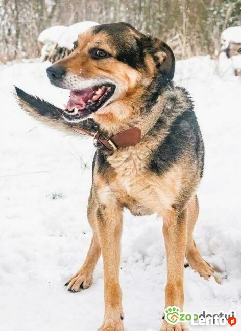 To taki poczciwy psiak. Wpatrzony w człowieka i ostrożny, aby nie zrobić nic źle..