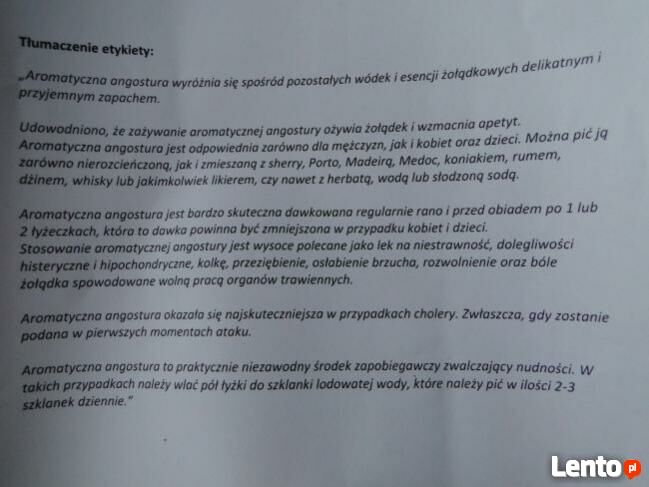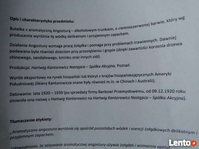 Oferuję Państwu butelkę z aromatyczną Angosturą z 1920-1939 roku HARTWIG KANTOROWICZ. Butelka 100 % ORYGINAŁ NIGDY NIEOTWIERANAMożliwy odbiór osobisty.