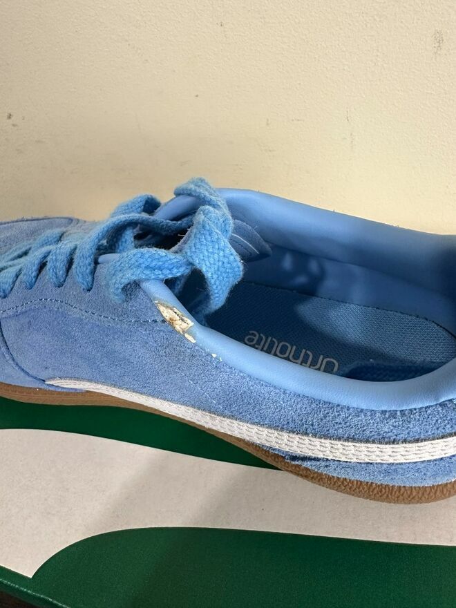 Cześć,Sprzedam w pełni oryginalne buty Puma Palermo 397271 w rozmiarze 39. Są w stanie bardzo dobrym, mają niewielkie przybrudzenia oraz jeden but ma delikatne uszkodzenie widoczne na zdjęciach