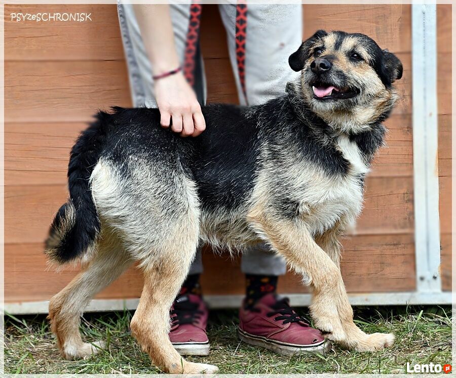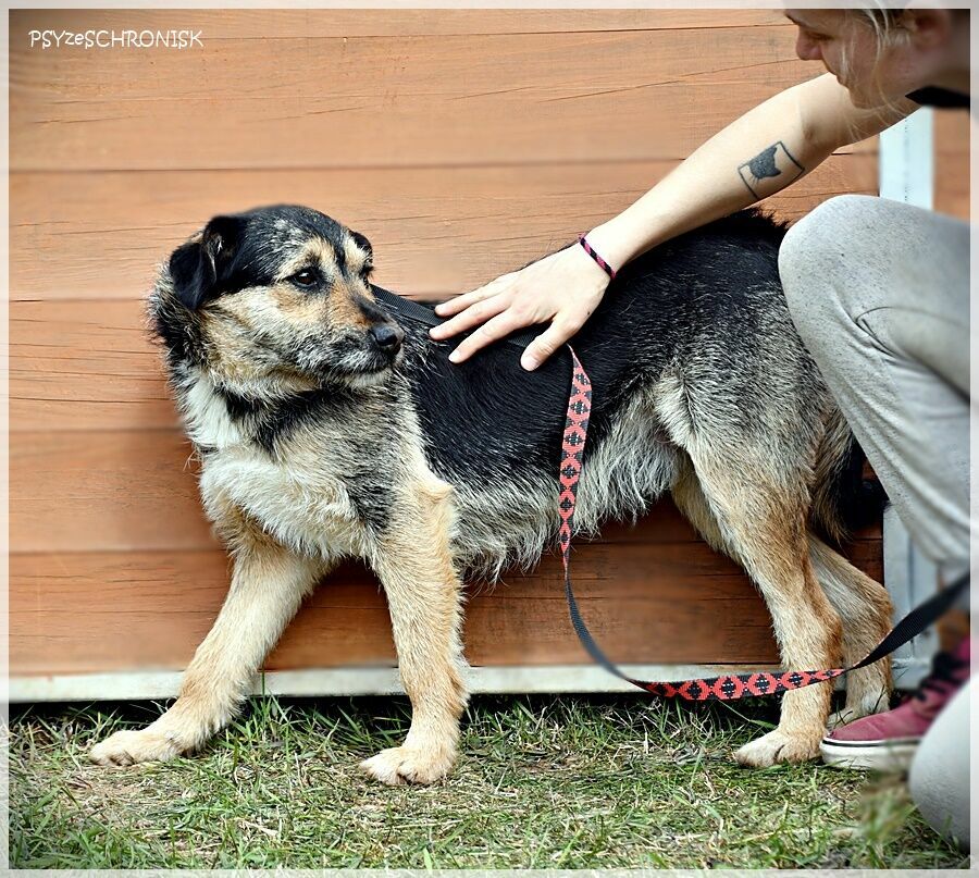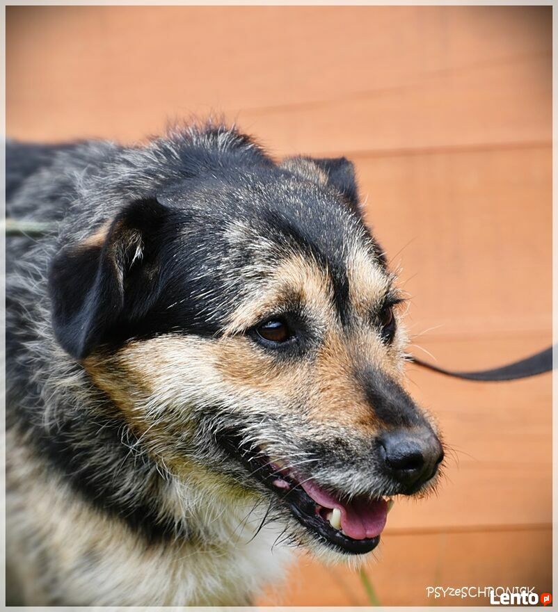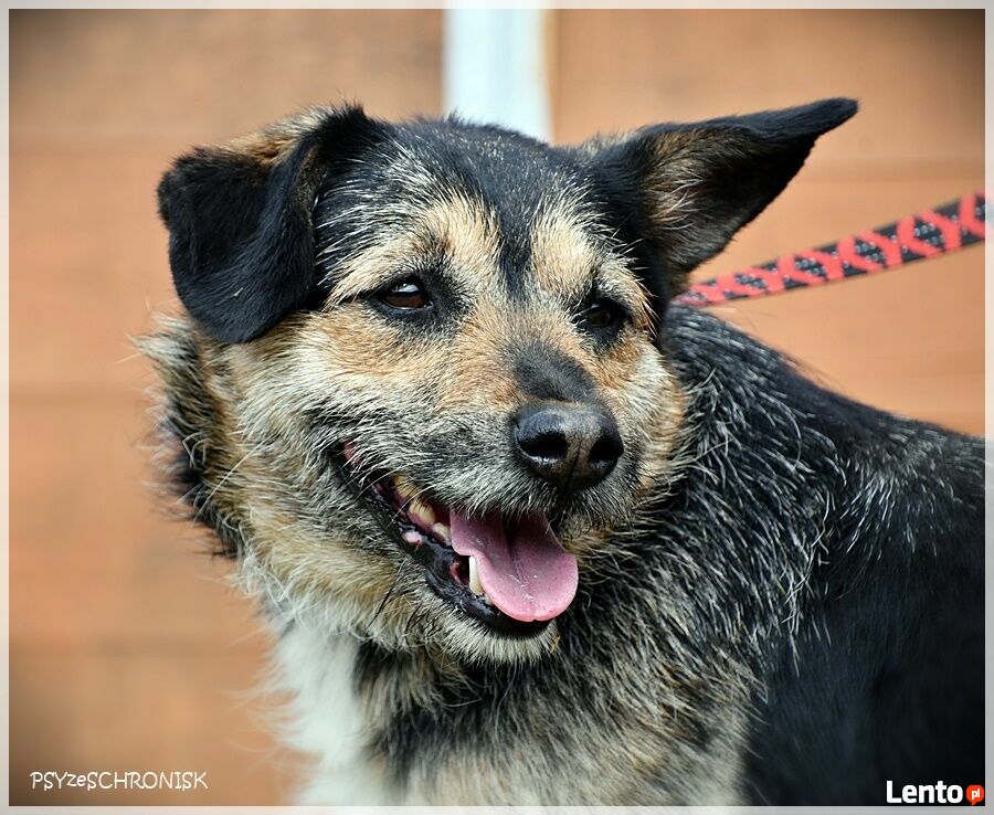Dobrze żyje z innymi psami, ogólnie jest pozytywnym, uśmiechniętym psem. Tyle, że outfit ma nie taki, żeby zwrócił na siebie uwagę. I wiek nie taki. I nie miał kiedy nauczyć się dobrego życia z człowiekiem, więc nie do końca wie, jak to okazać.